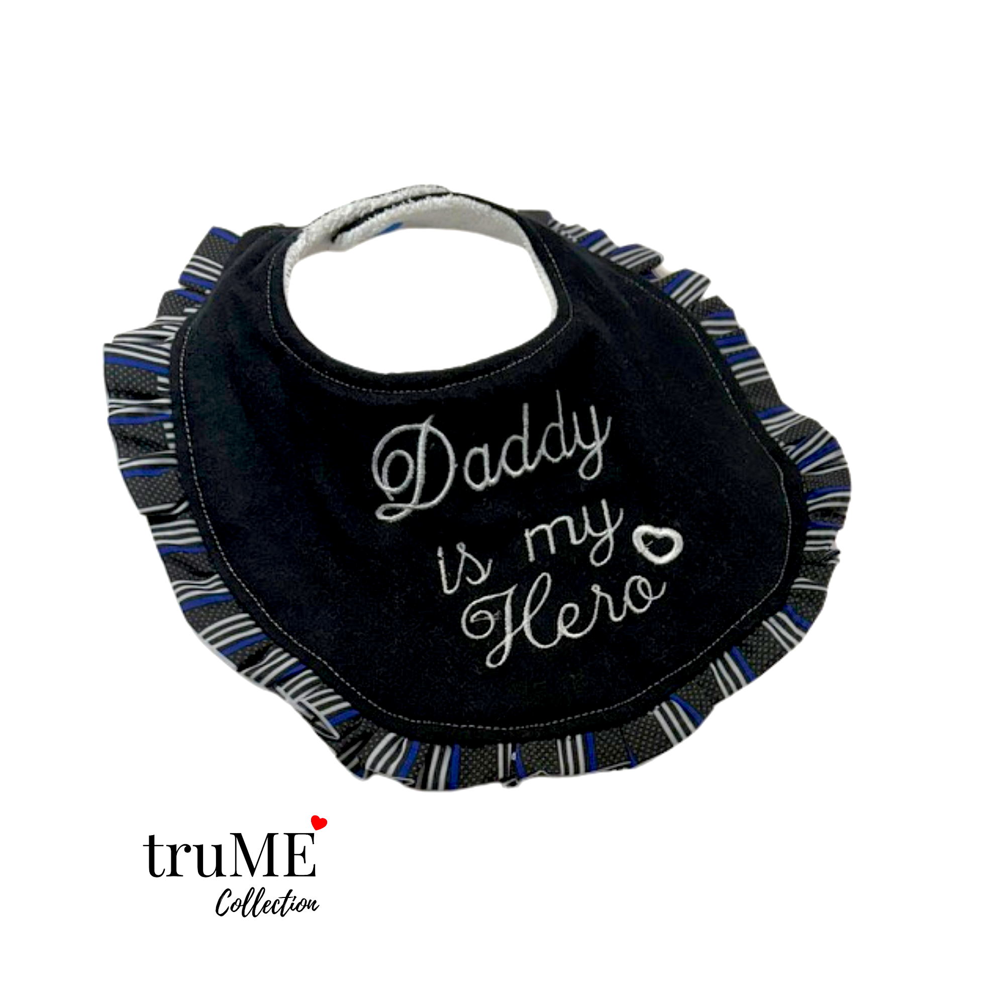 Handmade reversible bib in Thin Blue Line design